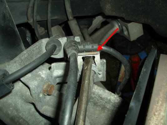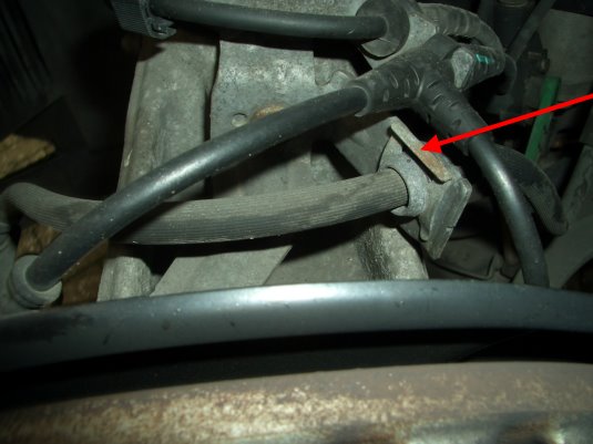Halteblech Bremsschlauch [Pfeil] mit Schraubendreher abhebeln.