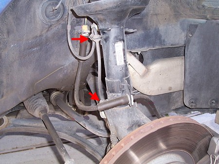 Kabel für ABS-Radsensor aus den 3 Halterungen ziehen.