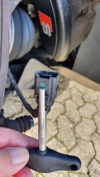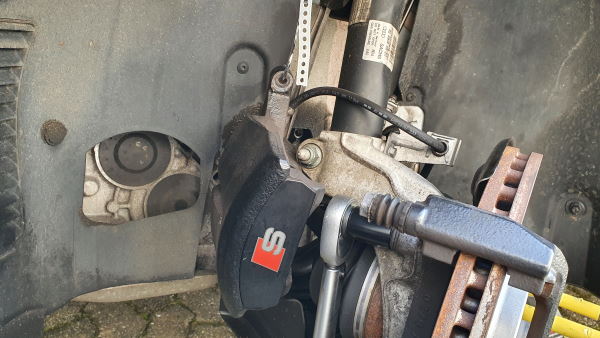 Auf der rechten Seite besitzt der S3 eine Belagverschleissanzeige, da muss der Stecker bei der Montage getrennt werden und der Stecker vom neuen Belag wieder aufgesteckt werden