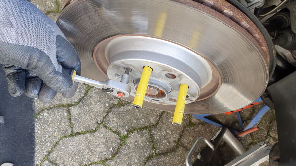 Befestigungsschraube 4,5 Nm Bremsscheibe lösen T30 oder Kreuzschlitz je nach dem was verbaut ist.