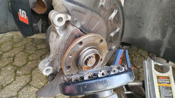 Bremssattelhalter Auflageflächen entrosten und mit Lithiumfett einstreichen