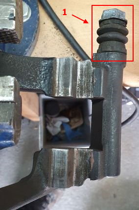 Manschetten [1] vom Führungsbolzen abnehmen Bolzen reinigen und mit  Lithiumfett einstreichen