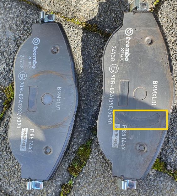 Die halbmondförmige Vertiefung muss auf der Kolbenseite des Bremssattel montiert werden
