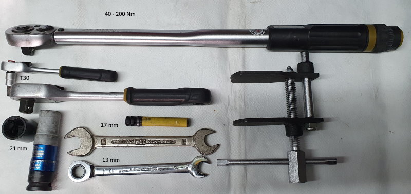 Bremssattel löschen mit 13 mm Schlüssel Gegenhalten mit 17 mm Maulschlüssel